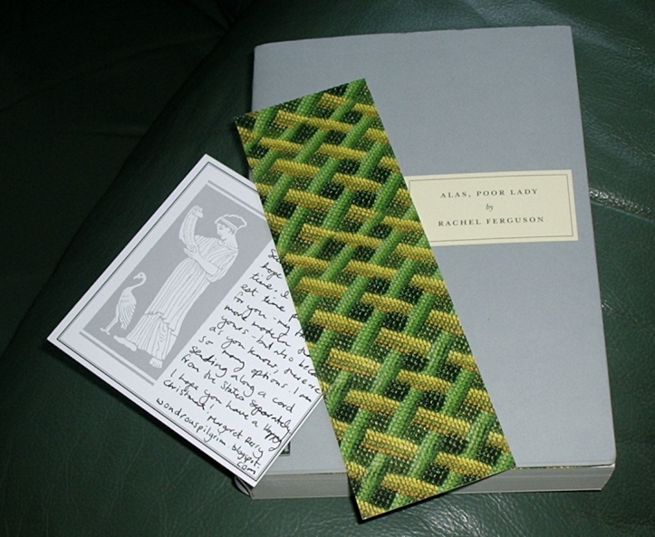 What a lovely gift. Alas Poor Lady is top of my Persephone wishlist at the moment. Partly because it looks wonderful and partly because I’ve spotted a copy of Rachel Ferguson’s autobiography in the library and I think I should read those novels that are available before I read her own story.