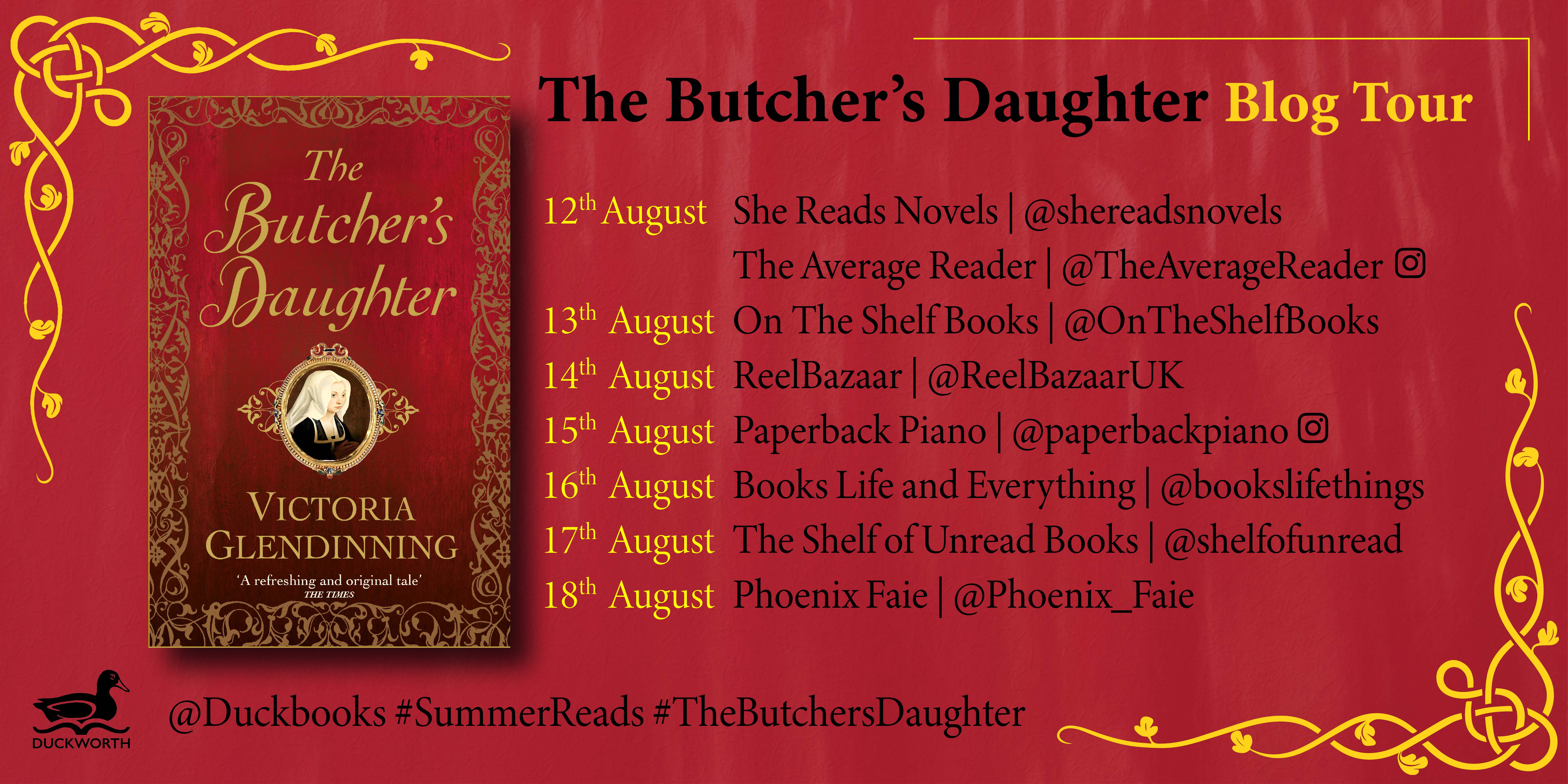Today I am taking part in a blog tour for The Butcher’s Daughter, a novel set in Tudor England during and after the Dissolution of the Monasteries. It’s a time period and subject that interests me, so I had high hopes for this book, my first by Victoria Glendinning.