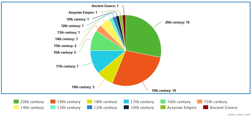The 19th and 20th centuries are almost always the top two periods I read about and last year I read an equal number of books set in each of them.